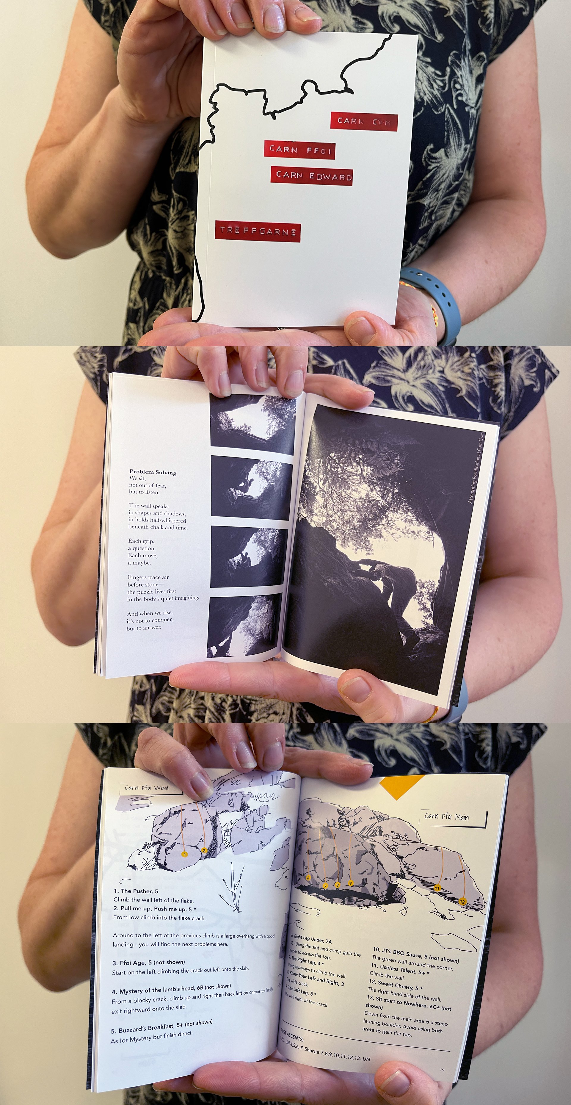 Within the 36 page A6 mini-guide you will get mixture of drawn and photographic topos (of the boulders) as well as a number of images, guides, illustrations and more.